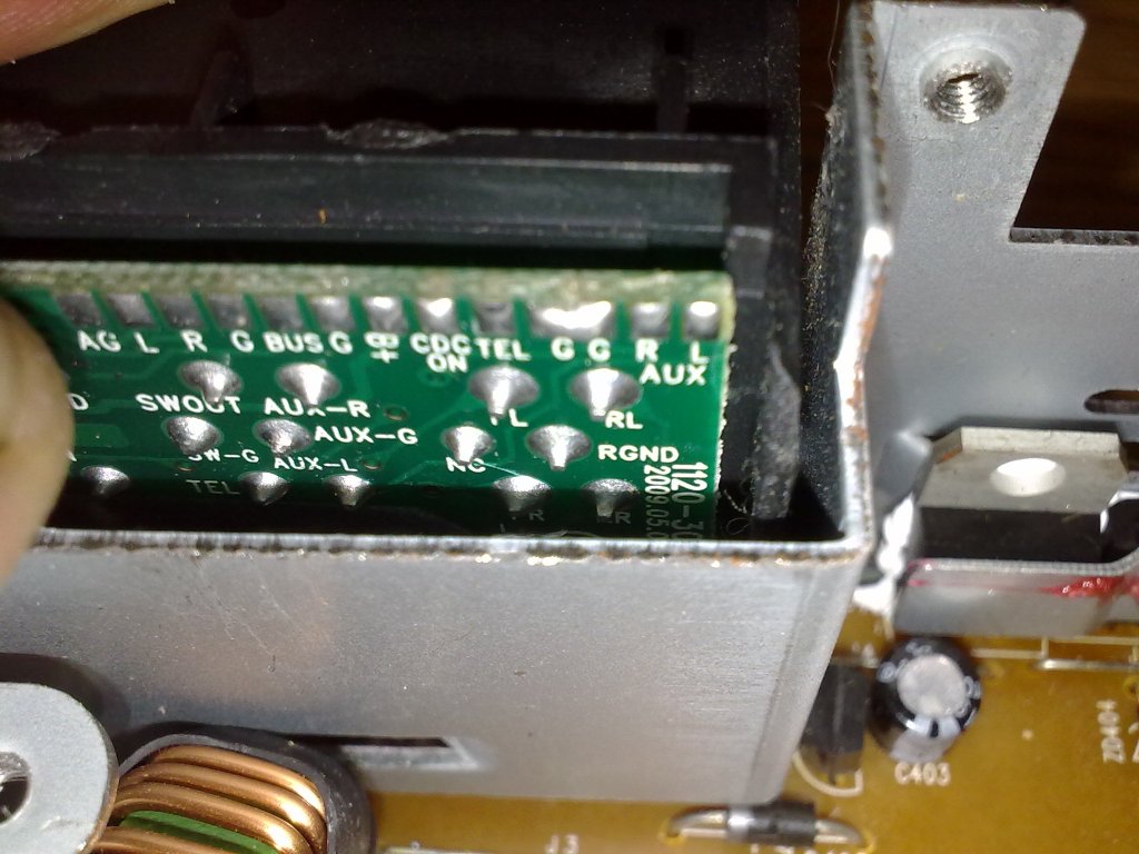 A kérdésem az, hogy mi van ezekre kivezetve? Próbáltam szétszedni kicsit és benézni a nyák hátuljára hogy milyen pozíciószita-feliratok vannak rajta, erről is készítettem egy képet. Engem igazából az érdekelne hogy van-e mikrofonbemenete. Mert ha lenne akkor kivezetném az A-oszlophoz hogy közelebb legyen a fejemhez. A beépített mikrofonja ugyanis a levehető előlapon van, ami távolabb esik és ezért nehezebben érthető annak akivel beszélek telefonon. (Ez egy bluetooth-os, kihangosítós autórádió.)