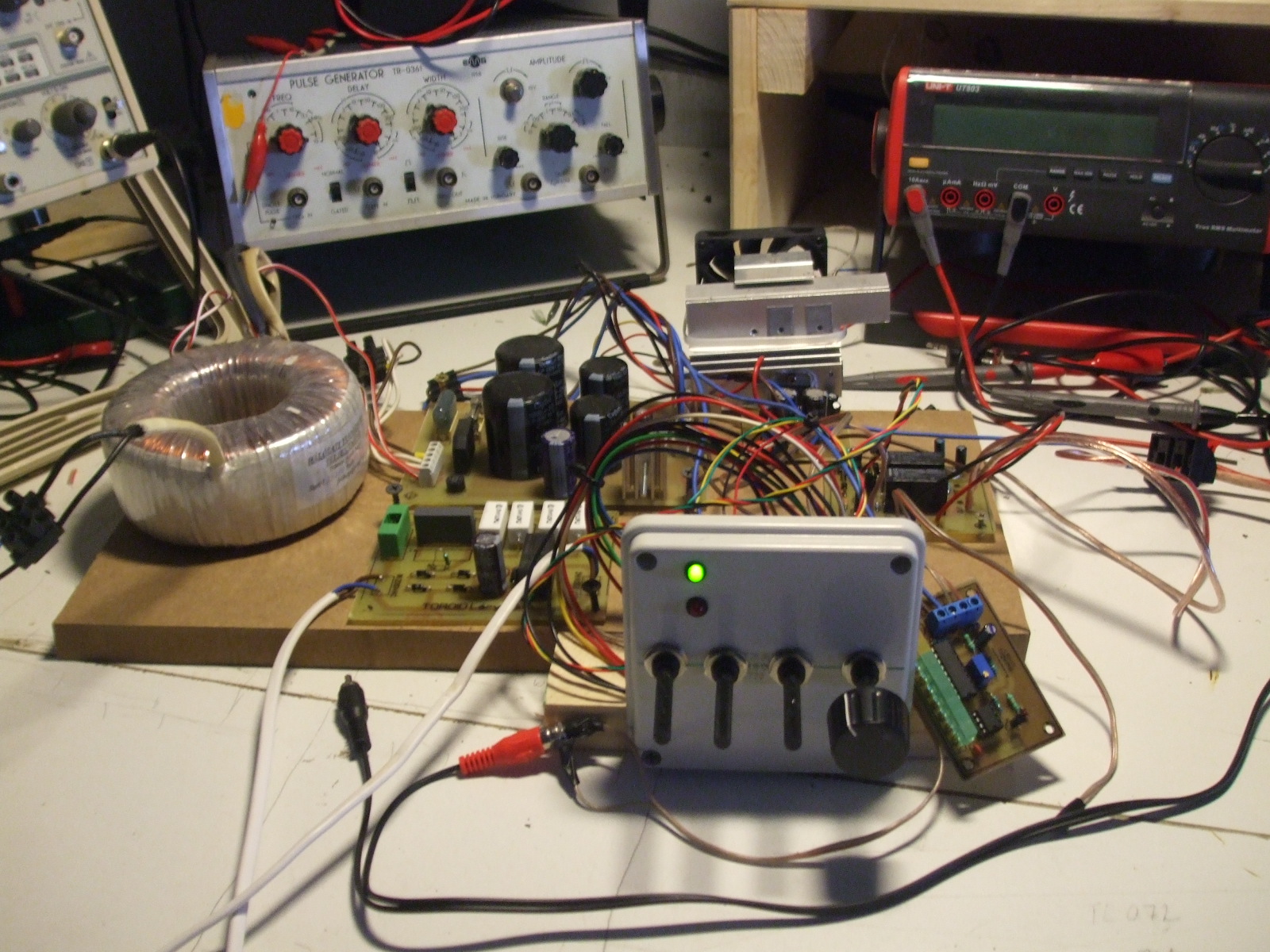 Eddig nem értettem, hogy mit jelentett amikor deszka szerelt erősítőről beszéltek. Most már értem Egyenlőre csak a bal cstorna végerősítője van rajta. Szeretnék még ventilátoros hűtést is amit egy NTC szabályoz, hogy csak akkor menjen a ventilátor ha kell. Tud valaki erre egy egyszű kapcsolást ajánlani? Szerk.: A végleges végerősítőn kivezetem a MUTE kapcsolót. Ez hogyan működik a TDA7294? Ha bekapcsolom a némítást majd ki akkor lágyan adja vissza a hangot vagy visszalöki egyből az eredeti hangerővel?