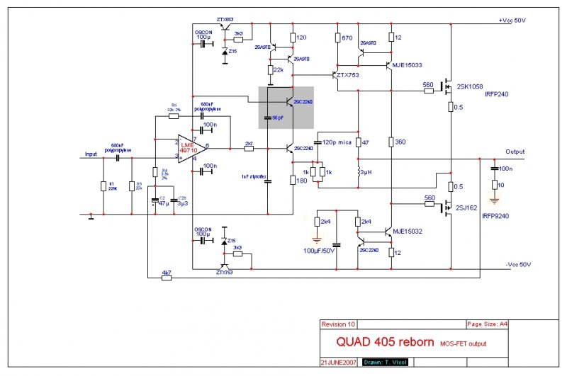 Szeretnék építeni egy QUAD405-ös végfokot, ill. kettőt. Van itthon egy 250VA-es toroid trafóm, 2x42VAC szekunderrel. Szóval az lenne a kérdésem, hogy akad-e valakinek ehhez a feszültséghez átalakított verziójú kapcsolási rajza, ill. már épített és üzemeltetett ilyen feszültséggel QUAD-ot. Köszönöm!
