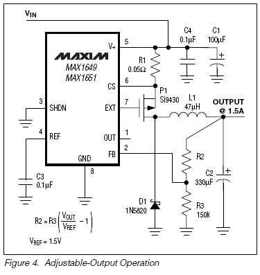 Van egy napelemem 14V üresjárási feszültséggel és 90mA árammal. 5 db sorba kötött AA ceruza akkut szeretnék tölteni vele. Ha jól számolom akkor 7V-al lehetne őket tölteni. Találtam egy MAX1649-re épülő kapcsolóüzemű DC-DC konvertert a mellékelt képen látható kapcsolással.