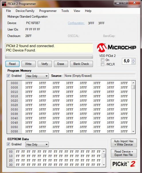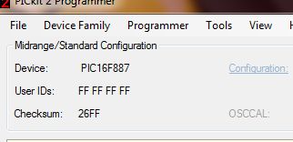 Idézet: A hibajelzés szerint valamilyen oknál fogva PIC 18F452 -re fordítottál programot, és azt akartad felszuszakolni a PIC 16F887 -re. „PKWarn0003: Unexpected device ID: Please verify that a PIC18F452 is correctly installed in the application.”