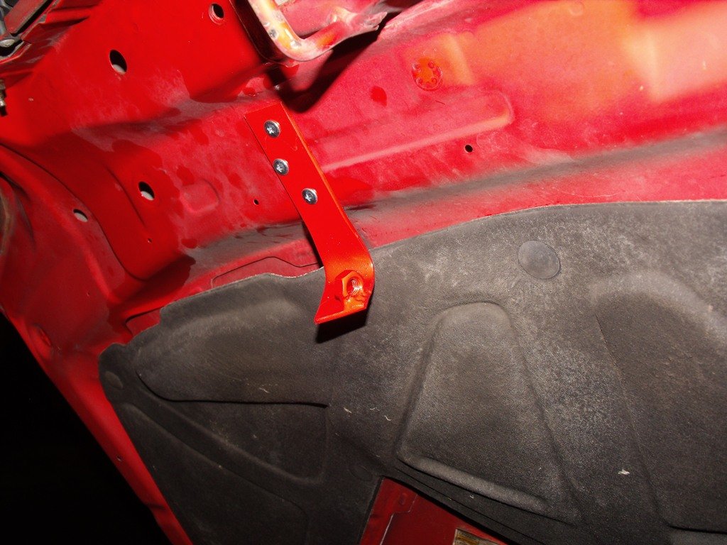 Készítettem egy elektromechanikus motortér-zárat, egy központizár-motor felhasználásával. A lényege az, hogy van egy kb fél centi vastag rúd, melyet a központizár-motor tologat egy kis üreges hengerben. A motorháztető aljára egy nagyobb méretű csavaranyát hegesztettem, amely pont az üreges henger végére kerül amikor a motorháztető le van csukva. A központizár-motor ekkor a rudat áttolja a csavaranyán és így nem lehet felnyitni a motorháztetőt. Nyitni szintén a központizár-motor nyitja, amikor a másik irányba húzza el a rudat.