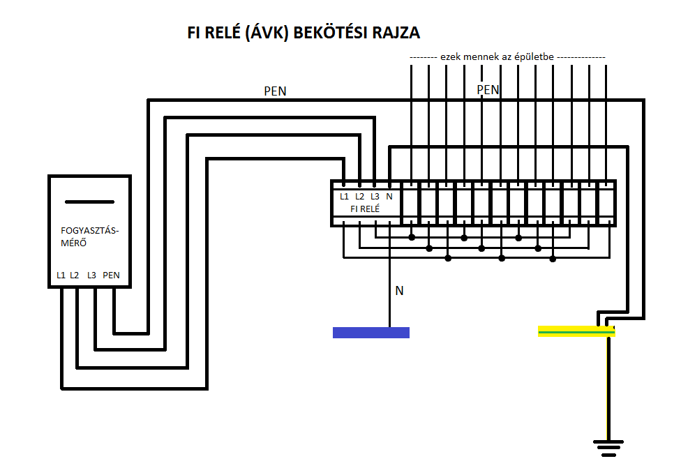 Kérdésem az lenne, hogy ismerős villanyszerelő felszerelt nálunk egy ilyet, és felkapcsoláskor mindig leoldott. Ő azt mondta, ez azért van, mert valahol az áramkör utána nullázva van. Viszont szerintem a kapcsolással van valami baj, mert úgy kötötte be, hogy: