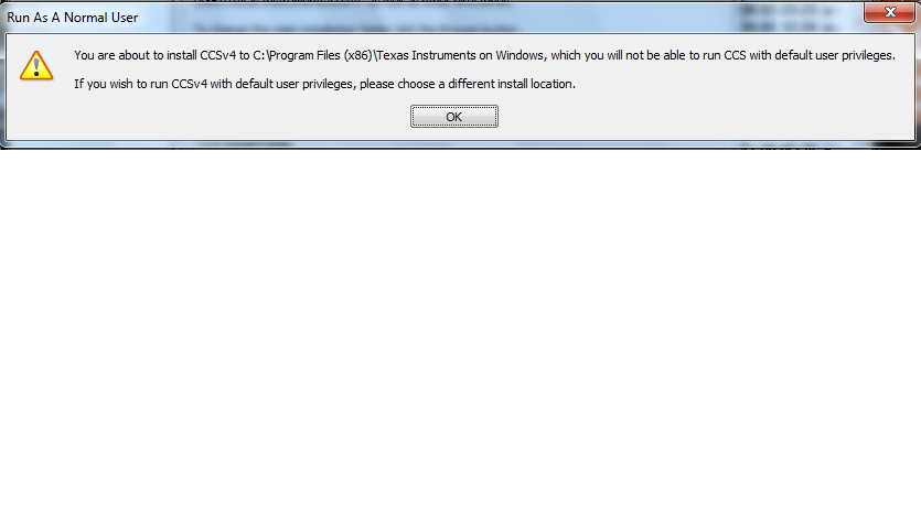 Ez nem hiba, csak figyelmeztetés. "Arra készül, hogy a CCS4-et a blabla könyvtárba telepítse, ahonnan nem fogja tudni futtatni alapértelmezett felhasználói jogokkal."