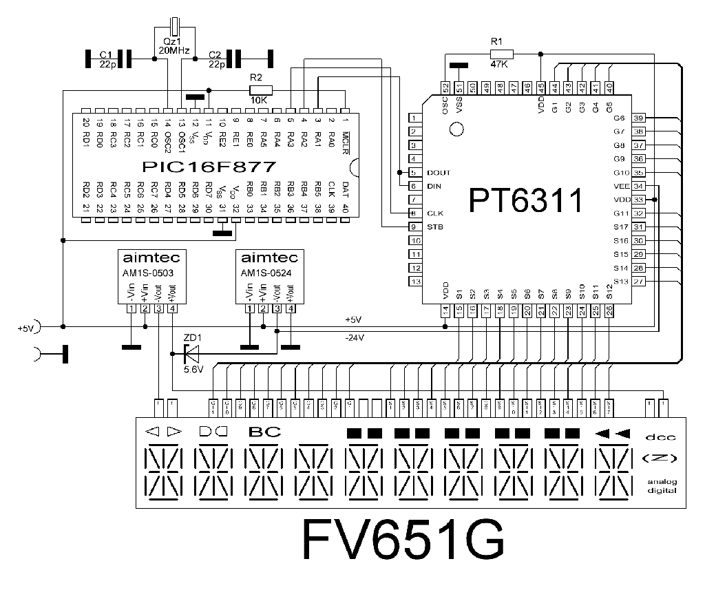 Az én változatom, csak akkor kell, ha a kijelzőben nincs ékezetes karakterkészlet (az én vfd-ben nem volt, helyette kanji karaktereket írt ki, ezért kezdtem vele próbálkozni) és az újabb változatát használtam a programnak, ami már támogatta a 16f628-at is. Viszont van az új programban egy soros kimenet vezérlés, azt kellene megnézni, az lehet, hogy meg tudja hajtani a soros kijelzőt kis változtatással.
