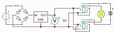 Nagyjából értem, de mivel 3 lámpát működtetnék, és az egyik ledes, ezért egy olyan kapcsolásra gondoltam, ami dinamó, utána graetz, egy 7805 stab., és utána egy tranzisztoros öntartó kapcsolás, csak az utolsó nincs meg, csak az öntartó kéne. . Egyébként meg nem rossz megoldás ez se, erre gondoltál?