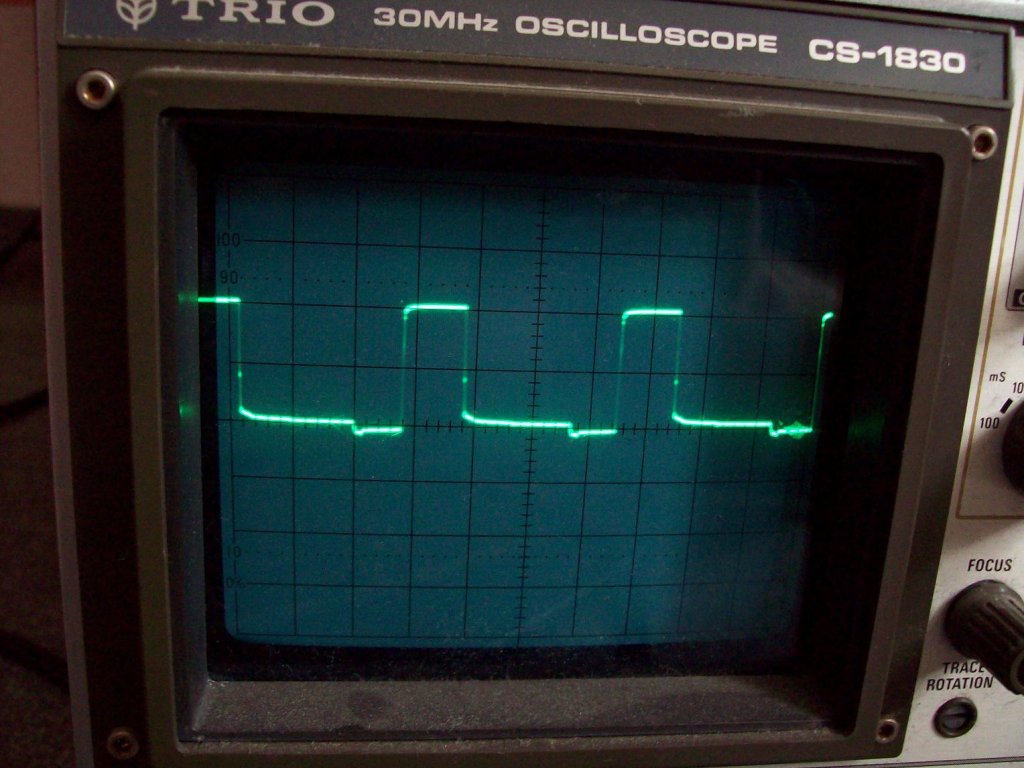 ) Teszek be képet a GS feszültség alakulásáról, és megjegyzem, hogy ez a fotó még a 8,2ohm -os gate ellenállásokkal készült, most viszont 5,6ohm a gete ellenállás.