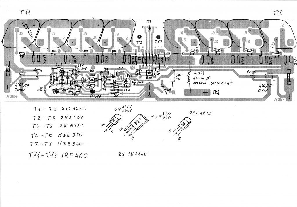Egy kéréssel fordulok hozzátok. Kaptam egy barátomtól egy FŐNIX ukrán erősítőt és nincsenek benne a végfok panelok, ezért én kis átalakítással beleszeretnék tenni két darab N-es Fettes panelt. Az átalakítás azért történt mert az eredeti rajz szerint 2X75V egyen feszről megyen az én tápom pedig 2X80V 33 000mikró 1600Watt. Kérésem pedig annyi lenne csak, hogy ellenőrizétek már le a nyák tervemet az elméleti rajzal, hogy ez igy jó lessz-e vagy kell-e valamit változtatni rajta.Előre is köszönöm mindenkinek.