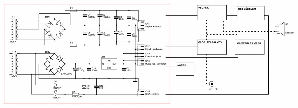 Nem bírom zavarmentessé tenni az erősítőm tápját. Mellékeltem a táp rajzát és vázoltam, hogy hogyan van kötve a GND vezeték (vastag fekete) és a bejövő jel GND (vastag szaggatott fekete). Minden egység külön panelen van és tápGND/jelGND egyhelyre fut össze. A zavar abból áll, hogy ha fel vagy le kapcsolok valamilyen fogyasztót pl.: forrasztó vagy világítás a pattan/durran a hangszóróm. Ha a bemeneten nincs semmi akkor halkan búg és, ha közelebb teszem a kezem hangosabban. Én földhurokra gondolok, de nem látom át, hogy hogyan kellene átvezetékezni. Szerintetek?