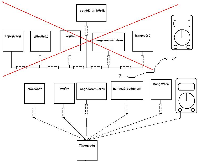 -No, a hangszóró testjét is a csillagpontból kellene indítani, nem a végpanelről. -A bemenetre, ill a hangfrekvenciás jelátvitelére, árnyékolt vezetéket kell használni. -A hálózati vezetéket minél messzebb kell a jelvezetéktől vinni. -És még valami, amit sokan elfelejtenek. A csillagpontot lehetőleg az áramkör legérzékenyebb pontjánál illene kialakítani, hiszen annak kell a leghidegebb pontnak lennie zavar szempontjából.