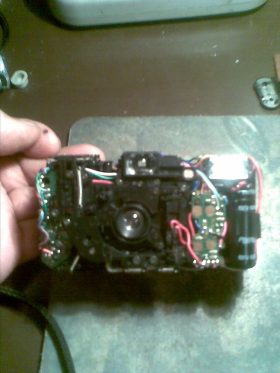 A gép megbontásához azért ajánlott némi gyakorlat a finommechanika ill. elektronika területén. Az ilyen gépek belül nagyon össze vannak zsúfolva, sokszor azt is nehéz megtalálni, hogy hol kell egyáltalán elkezdeni a szétbontást. Nem ritka hogy 6-8 panel van benn hegyén-hátán, egymással ágas-bogas fóliakábelekkel összekötve, amiket nagyon könnyen eltéphet az ember, ha nem vigyáz. (Saját tapasztalat.) Érdemes feljegyezni hogy mit honnan csavartunk/húztunk ki, nehogy összerakás után egy marék plussz alkatrész maradjon. ![]() Az optikai rész itt egy egység, s ha megbontjuk, esetleg elállítódhat a gép képélessége. Így ha tehetjük, ezt ne nagyon bántsuk. A tisztításhoz kézi tisztítópumpa ajánlott, a sűrített levegős flakonban ugyanis lehet kicsapódott vízpára, ami a lencsére kerülhet. A lényeg hogy az optika hátsó része és az azon ülő elektronikus panel közé kell befújni a pumpával, a légáram kiviszi majd a porszemeket ill. szöszt.