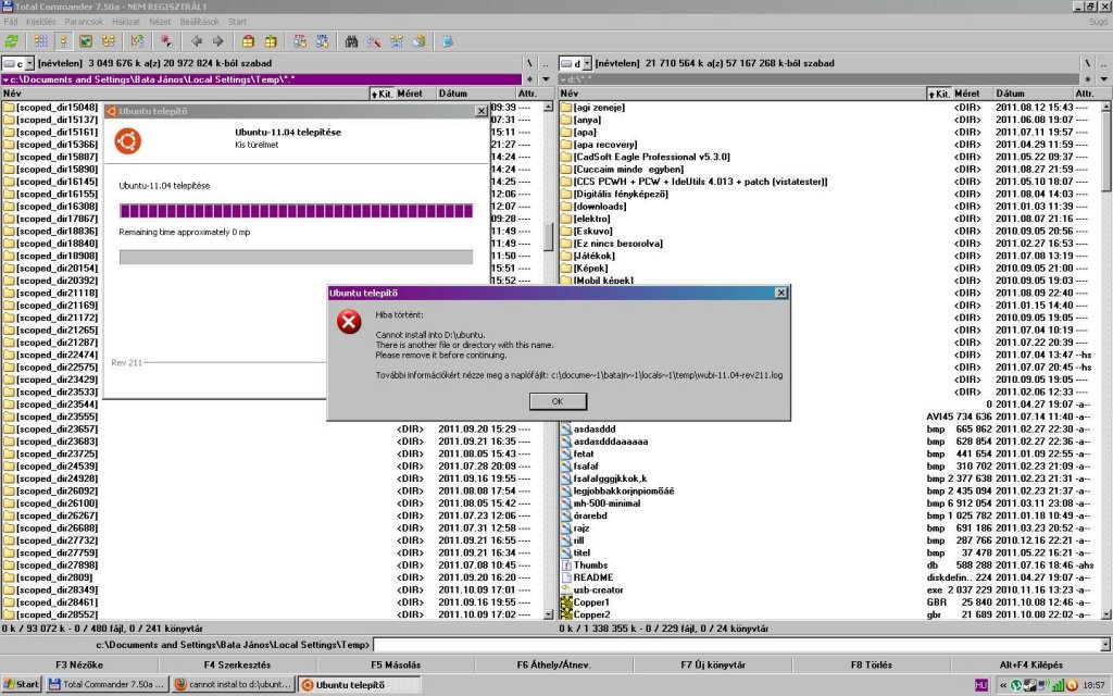 Ma akartam az ubuntut újra rakni, de ez a hiba jött ki.. Nincs a D-n ubuntu mappa.. :O Megoldás?