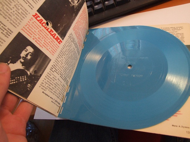 Magyarországon kapható orosz nyelvű gyermekújság melléklete volt. Minden újságban 2 db volt a lap közepén, kerekre vágva ollóval használtuk. Még Beatles és kortársai is voltak, komolyzene és gyermekmesék társaságában. Meglepően sok lejátszást elviselt ha viszonylag kis tűnyomású lejátszót használtunk.