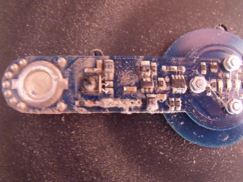 Becsületére váljon a kontrollernek,hogy egy kb 9-10 Voltos feszültségen üzemelt kb 20 percet akkor adta be a kulcsot mikor nem forgott és nem hűlt! (folyamatosan resetelni kezdett meg fagyott) A hiba oka nálam egy rossz ellenállás volt (kettő párhuzamosan van mi a referenciafeszt állítja) de tanultam belőle! Figyelembe kell venni,hogy rezeg,forog a forrasztások ellenállások mechanikailag is terhelve vannak.. A táp egy nagyon kényes dolog itt és ezt a legnehezebb optimalizálni szerintem..A meghajtókra nem árt egy smd tantál puffert forrasztani (20µF/6V) így kevésbé érzékeny és az is jó kis biztosíték az esetleges túlfesz ellen