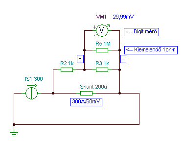 A műszered belső ellenállása ott van az általad leírt paraméterek között, az utolsó helyen. - Mert a Digit, nem áramot, hanem mindig feszültséget mér. Tehát a bemenetére akkora Shunt ellenállást raknak amin az adott áram végértékén mindig 200mV esik. (pld. 2mA-nál 100ohm mert U=I*R=2mA*100ohm=200mV) - Ha neked a műszered 200mA-es, akkor annak a táblázatod szerint a bemenetén 1ohm van. Ha ezzel a műszerrel sorba kötsz egy szintén 1ohm-os ellenállást, akkor gyakorlatilag kész is vagy, mert a két egyforma értékű ellenállás pont felezi a feszültséget. - Persze 1ohm-ot ami egyforma a műszerben lévő ellenállással nehéz szerezni, így járható út a következő is: Kiveszed a műszeredből az 1ohm-os ellenállást, és két egyforma értékű ellenállásból készítesz feszültségosztót a műszer számára. Ez célszerűen lehet akár két 1kohm-os ellenállás is, ahogy Péter is említi. Ekkor 60mV értékre, a műszered 30mV-ot fog mutatni, amit 300A-ként fogsz megjeleníteni. Lerajzolom, mert látom bizonytalan vagy.. üdv! proli007