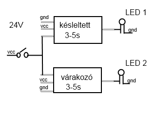 Nekem egy olyan kapcsolás kellene ami ötvözi a késleltetett kikapcsolást valamint figyeli a kapcsolóáramkör zárásának idejét és ha az elér egy bizonyos intervallumot (állítható 3-5s) akkor zárjon egy másik áramkört, de a gomb elengedésével bontsa is. Egy olyan hívó funkciót szeretnék megvalósítani ami egy gomb megnyomásával bizonyos ideig (ez is állítható 3-5s) bekapcsol egy led-et függetlenül attól meddig van nyomva a gomb, de ha nyomva tartom akkor zárjon egy másik is. Ha elengedem a gombot hosszan tartó nyomás után, akkor a második áramkör bont a késleltetett kikapcsolás a led-re viszont ekkor is lefut. Egy amatőr rajzot csatoltam a jobb megértés kedvéért.