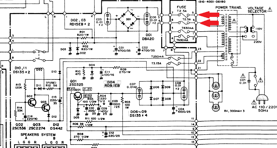 Szevasztok! Javítgatok már egy ideje egy sanyo 233as erölködőt. A lényeg, hogy anno a végfokja elvileg el lett durrantva. Most ott tartok, hogy két biztit folyamatosan bekapcsolás után eldurrant. Tovább vizslattam, és 3 kondi még el volt szállva, illetve egy zéner a felismerhetetlenségig elolvadva. Nem maradt más, a hétvégén megvettem a service manualt. Ki is vadásztam a cserélendő alkatrészek típusát, és maira cseréltem őket, de megint eldurrantotta a biztiket. A végfokot egyszer már cserélték, de van itthon még egy tari ha esetleg az miatt csapkodna. A teljes kapcsolásból csak azt a részt jelöltem ki, illetve piros nyíllal jelöltem, ahol eldurrantja a két biztit. Sajna a teljes könyvet csak annak tudom megmutatni, aki személyesen eljön átnézni. Nekem jelenleg lövésem sincs merre tovább. Segítsetek ha tudtok! Nagyon fontos lenne életre kelteni a kicsikét.