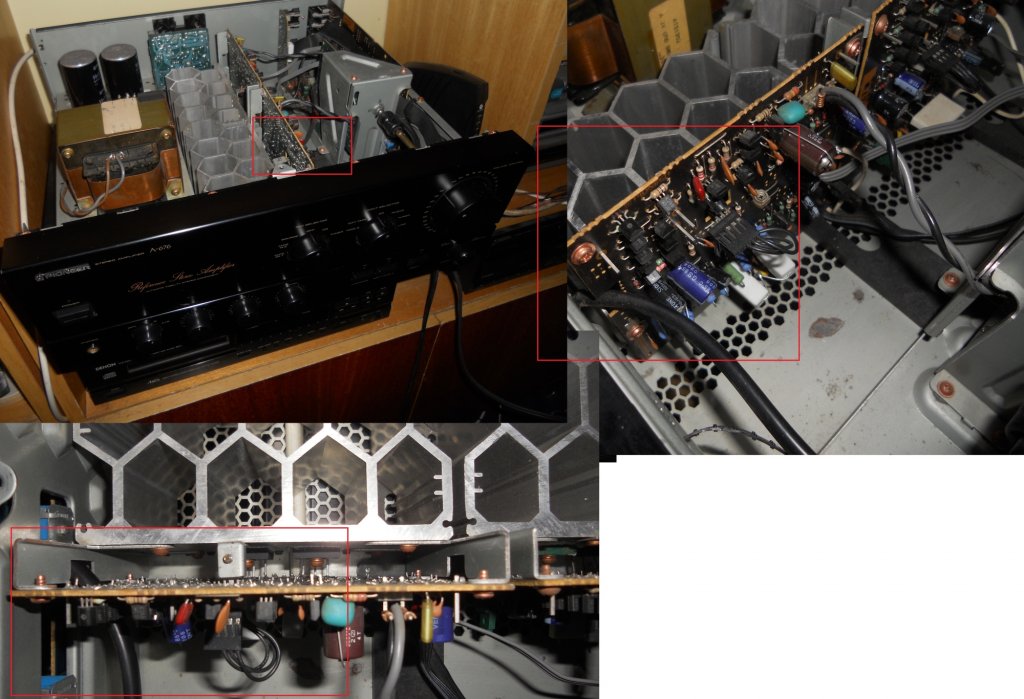 Sziasztok! A következőben kérném a segítségeteket. Vásároltam egy Pioneer A-676-os Referencia erősítőt, szép állapot, gyönyörű hangzás. Sajnos nem sokáig élvezhettem, mert én f*sz kíváncsi voltam, hogy hogy szól vele a 640W-os MNC BigBull x2-es duplatekercses mélynyomó, mert régen nagyon szólt. Akkor egy régi kenwood erősítő hajtotta amiben amugyis tönkre volt menve valami, de sikerül egyszer a relé direktre kapcsolásával életet lehelni bele, egyszercsak leégett az erősítő egyik pillanatról a másikra. Na mondom eddig bírta, nem törödtem vele különösebben.... Na most hát ezt a mélynyomót rákötöttem a pio-ra és amint bekapcsoltam rövid időn belül füst tűnt elő. Gyorsan kikapcsoltam, kihuztam minden kábelt kivéve a konnektorból az áramkábelt....aztán vissza kapcsoltam és ujra jött a füst, szétszedtem akkor már nem füstölt. Most az a helyzet, hogy szépen szól a jobb oldal viszont nagyon csúnyán torzít a bal és a bal végfok hűtőbordái sem melegszenek, a jobbak langyosak de a baj hideg. Van esély, hogy meg lehet javítani s olyan minőségben szóljon mint ezelőtt? A képen nagy valószínűséggel a kijelölt részről jött a füst. Jah és most az eset után szétszedtem a mélynyomót és nagyon büdös égett szaga volt, valamint a mebrán se mozog csak nagyon nehezen recsegve.... :/