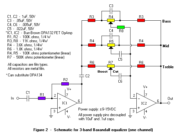 Hazimozi erosítomben a center elofoka tonkrement. Szeretnek egy ujat epiteni a regi helyere. Az alabbi kapcsolasra gondoltam, hogy csak a magasat es a kozepet megepiteni, a melyhez tartozo ellenallast es potmetert kihagyni. Viszont csak ket potival tudnam szabalyozni a center frekvenciajat. Van valami otlet hogy egy sztereo potival tudjam a magasat es melyet szabalyozni? Esetleg masik kapcsolas? (A centerben ket melykozep es egy dom sugarzo van.))