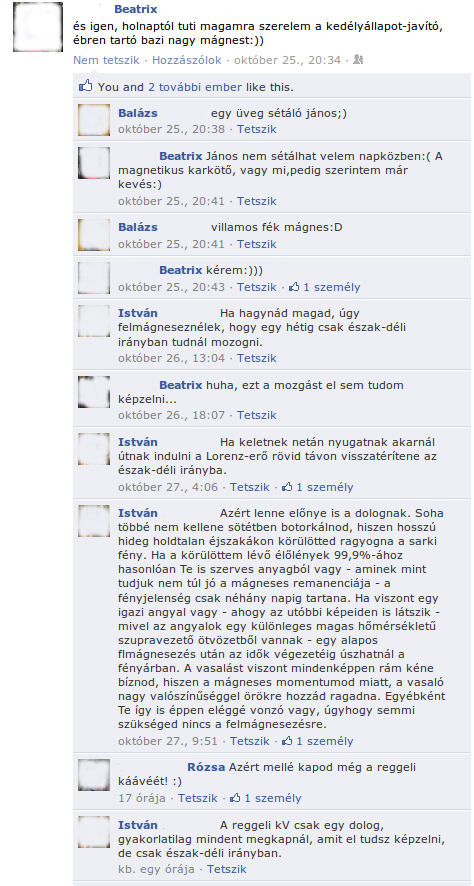 Idézet: „Hú micsodi?má nem értem elvesztettem a fonalat!meg kelk tenni de nem akarom?akarom de nem tehetem?mivan?ezt tanityák valahol?semmi értelme!” Szóval ... a face...n, Itt dőltem a kardomba...! Még jó hogy nincs? mert ezt nem írnám! Nagy az Isten... Csak kicsi a kerítés...