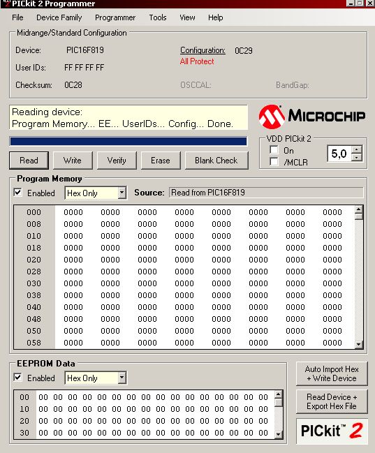 - Programozáshoz, használj lehetőleg PICKIT2 vagy 3 programozót. Kerülendő a JDM (soros porti) programozó.