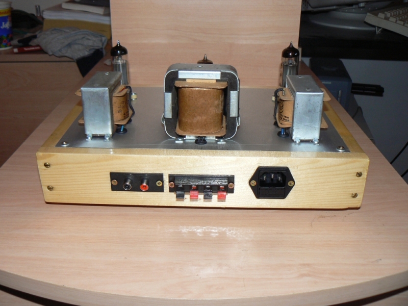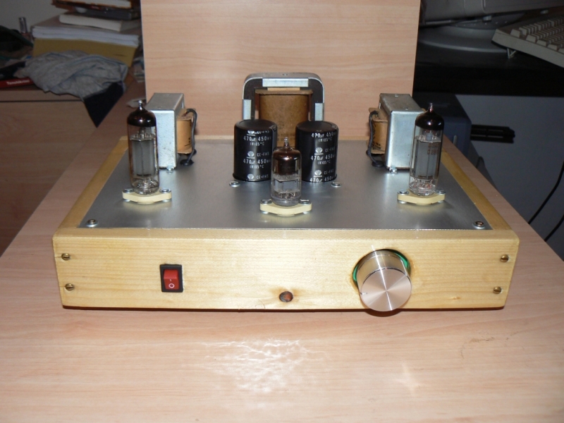 Elkeszult az elso csoves erositom. Kisebb simitasok meg vannak, mint peldaul bekapcsolas keslelteto, de mar tokeletesen mukodik. A kimeno trafok nem a legjobbak. Regi csoves radiobol sikerult 2 egyformat szereznem es azok vannak benne. A baj csak az, hogy nem eleg nagy a vasmag keresztmetszet , ezert a mely hangok sem a legjobbak. Viszont a minoseg leirhatatlan, meg igy hasznalt csovekkel is. Persze jo minosegu hanganyag is kell hozza, csak igy lehet elvezni...