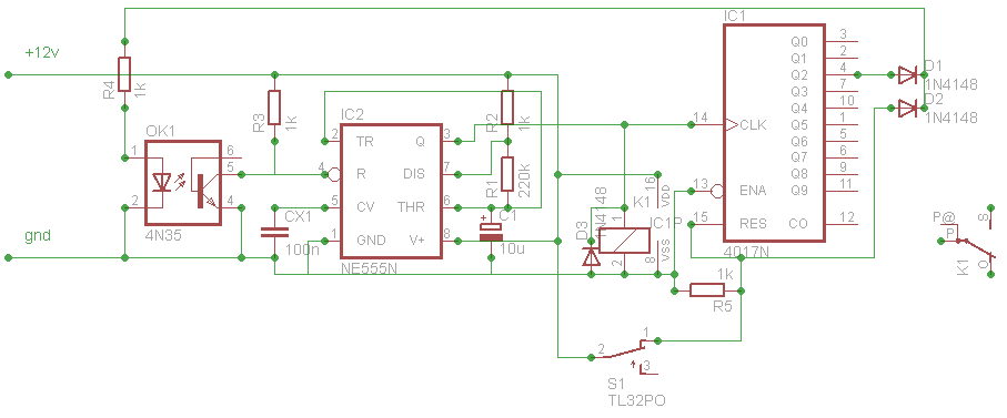 Ha kapok mindent hozzá, összeállítom, s majd jelentkezem. Az 555-ös 200mA-t tud, nem volna üzembiztosabb, ha egy tranzisztoron keresztül vezérelné a relét? Van amikor órákig is behúzva lenne. És működik vajon úgy a kapcsolás, hogy a tápellátás ágába volna a kapcsoló? /hogy ne menjen folyamatosan a 555-ös, mert ez egész évben üzemelnie kéne/ /meg az a kapcsoló valójában egy relé, ami máshonnan kapja a vezérlést/ |