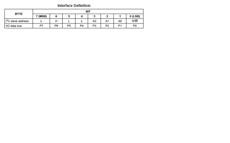 A PCF8574 I/O-expander adatlapján találom a csatolt kpen látható adatokat.