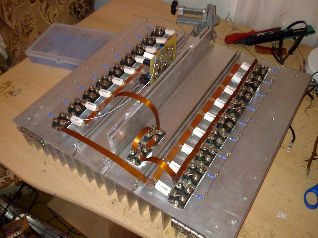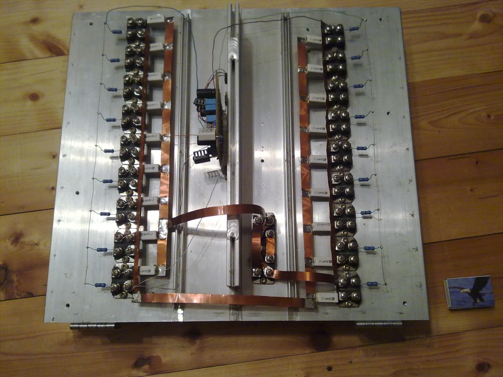 Szia! A feteken nem fog múlni, bele fér a SOA-ba. A 90-100A csúcsáram kezelését izgalmasnak tartom. Láttam a korábbi fotóidat, felkészültél rá. Megelégednék 2 ohm -mal, azt is szép feladat táplálni, és jobban meg lehetne különböztetni a terhelést a zárlattól.