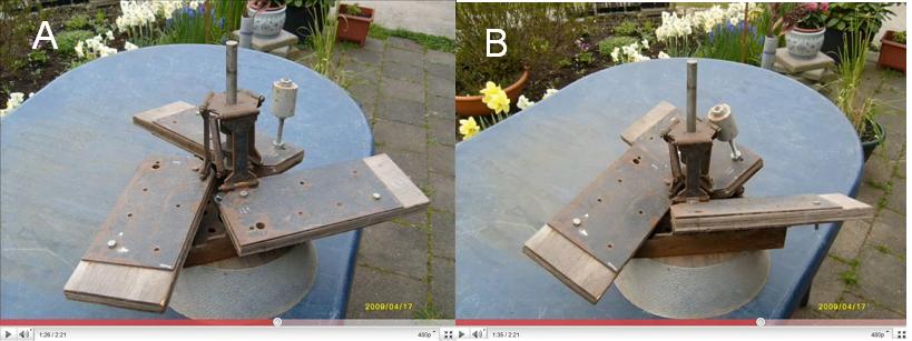 Az egyik képet tanulmányoztam komolyabban, a másikon csak átsiklottam, abban a hitben, hogy az előző nagyítása. A két képet egymás mellé tettem és észre vettem a különbséget. Mellékelem a képeket. Az A. képen a szélkerék az óra járásával ellenkező irányba forog, míg a B képen az óra járásával megegyező irányba. Éreztem, hogy valami zavar, de nem jöttem rá. Ezzel a konstrukcióval az ember eldöntheti, hogy hogyan állítja be a szélkerekét az ember. Ha erősödik a szél, a szélkerék forgása lassuljon, vagy gyorsuljon, ha mindegy a forgási irány. Még egyszer köszönöm.