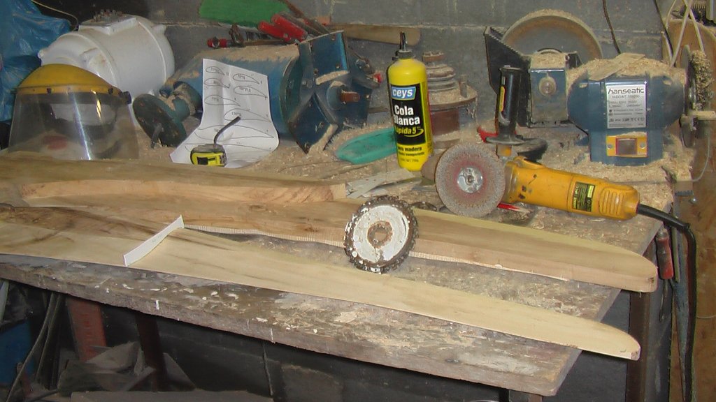 borovi fenyő táblásított anyagból,1dbgöcs és fahiba sincs bent és jó sürü szálú.Ez lenne epoxival kezelve festve.Nem a kivitelezéssel lenne itt a gond.Hanem 6 deszkából vágott lapát szögbeállítva profilozva de csavarás nálkül hogy vinné.Kicsiben 2m es verzioban már megcsináltam és forog szépen könnyen indul.Mondjuk nincs terhelve csak azt néztem forog e egyáltalán.