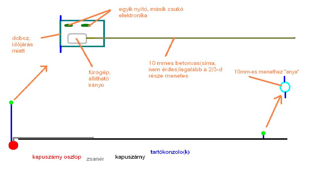 A fúrógép jó motornak. Nem elég az időzítő, kellenek határoló elemek. A kapunak korrektnek kell lennie, nem lóghat és könnyen kell mozognia. Lehet kapni adó-vevő modulokat elektronikai boltokban. Nem valószínű, hogyha nem ugrókódos cuccot használsz, akkor "mindenki nyitogatni fogja", azért ez ennyire nem véresen komoly. Ha valaki komolyan be akar menni, akkor bemászik és ha valakinek nincs kapunyitója, akkor csak kiakasztja belül a "riglit" és már teherautóval is bemehet. Kicsi a valószínűsége, hogy egy átlagembert profi bűnözők kifigyelnek és leklónozzák a távirányítót. Persze nem 1000Ft-os vezetéknélküli csengővel kell nyitni, de a sima rögzített kódos modulokat sem tudja akármi nyitni. Nézz el ide, mert lusta vagyok többet írni, bocs: terminal kapunyitós fórum az alapokhoz Ja a Nyeste-s srác gephu programja alapkövetelmény! Köszönjük meg Szabolcsnak az önzetlen munkáját! Üdv Inhouse