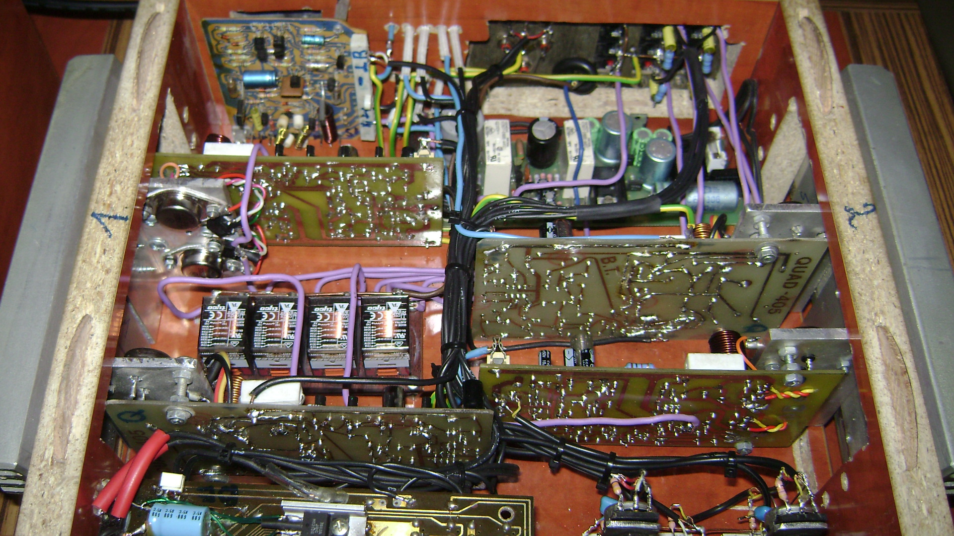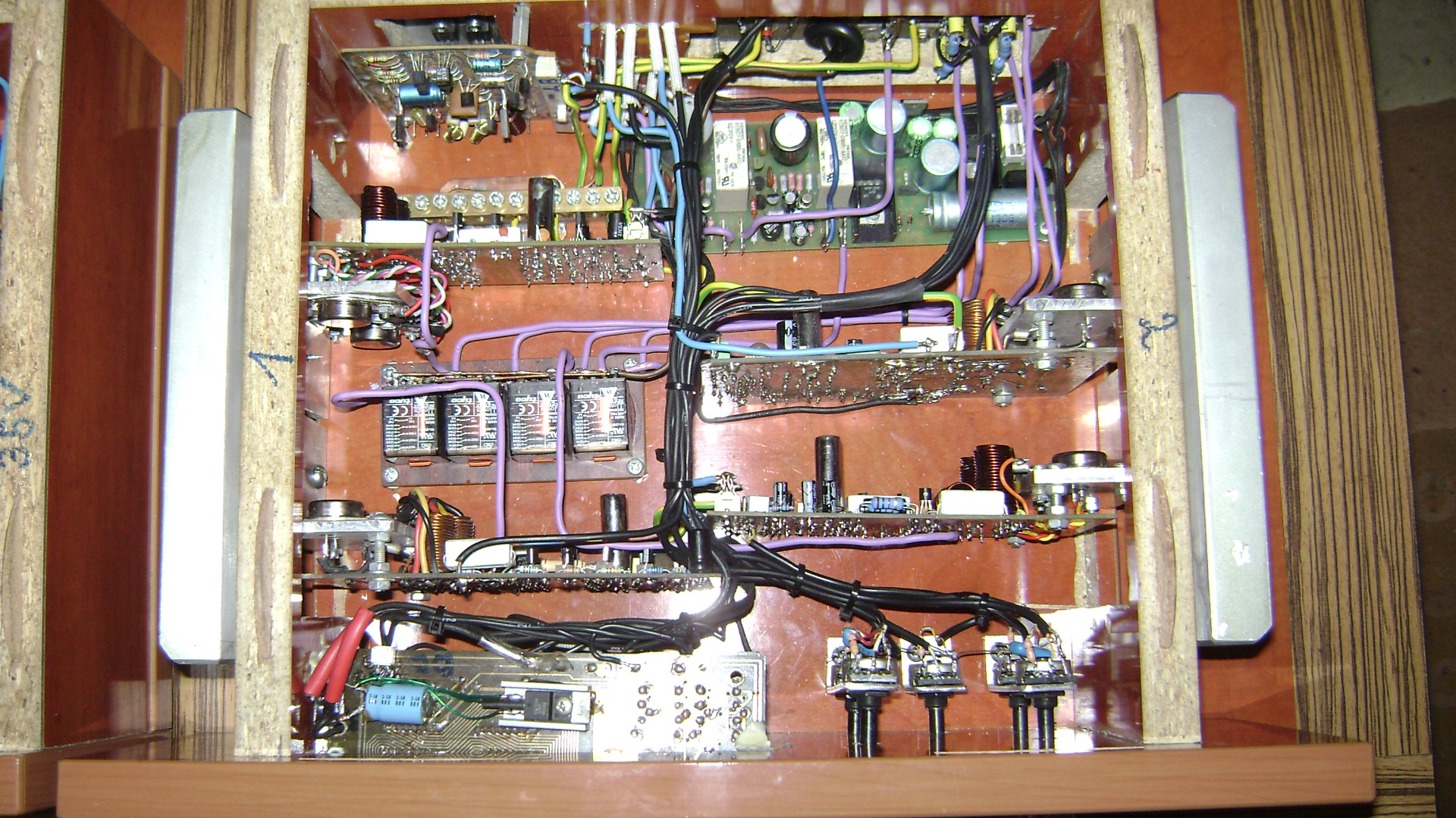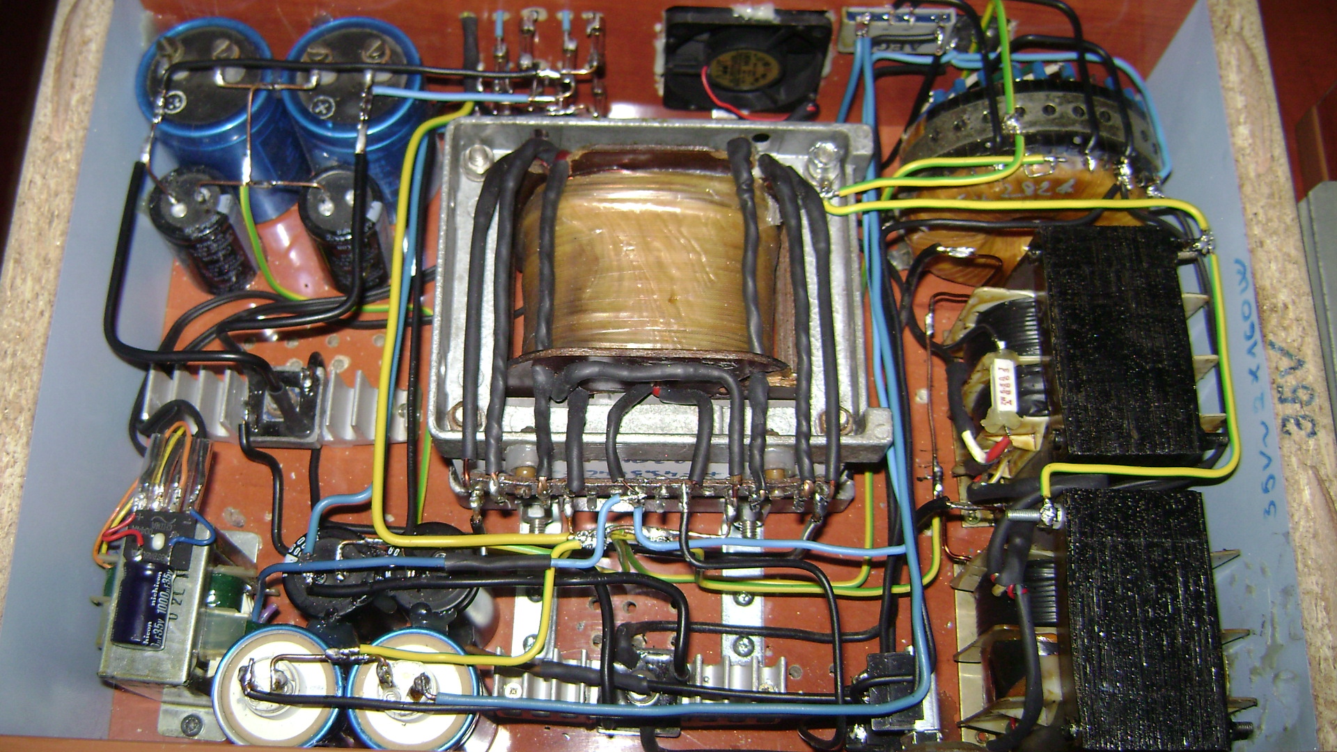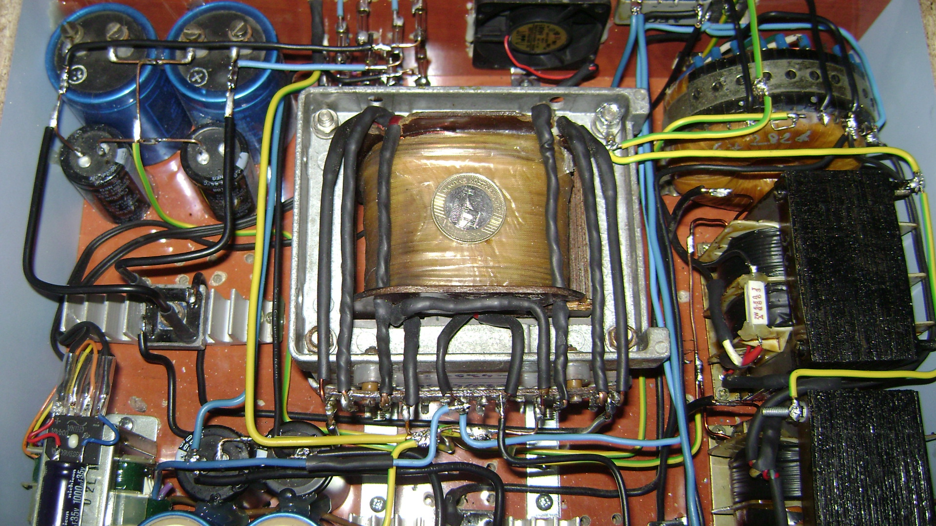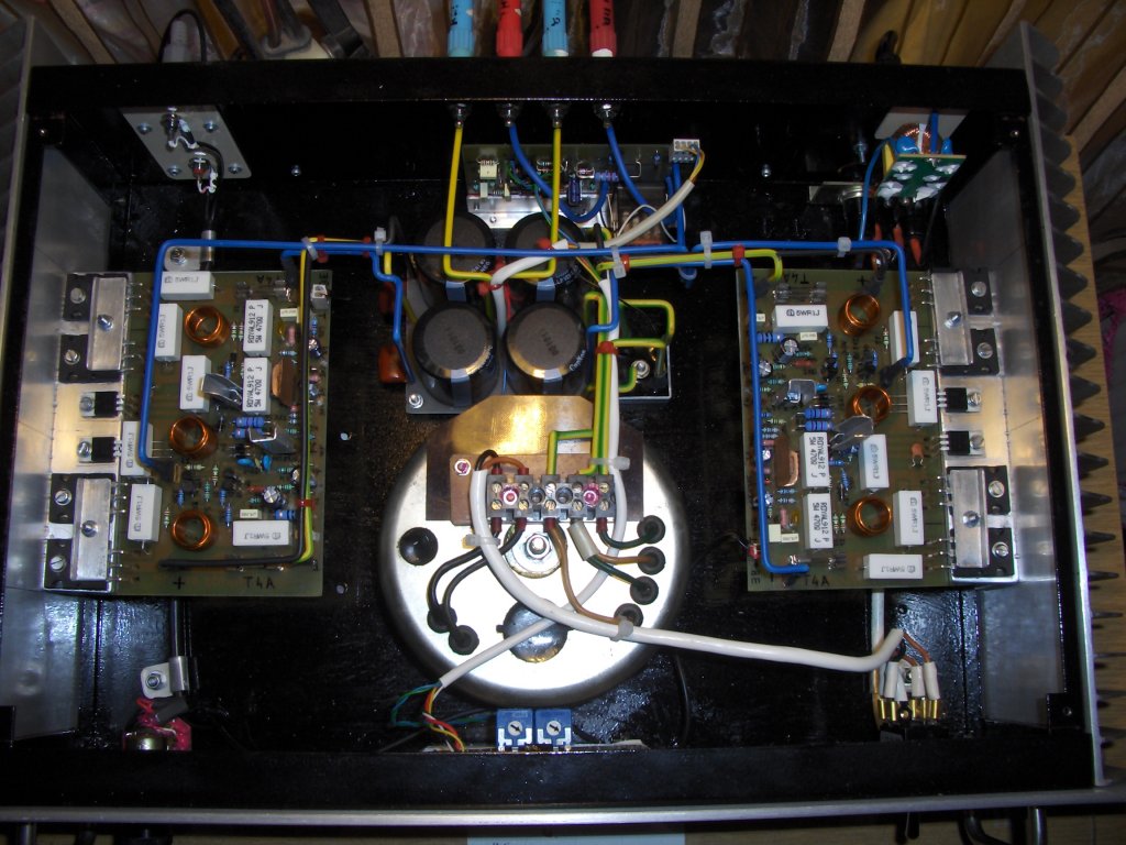 Ami az előbb kimaradt: 4X100W+1X30/50Vidi. A főtrafó ami hajt két Q-t 450W 2X36V saját tekerés, a másik kettőt 2db vidi 160W-os 36+36V