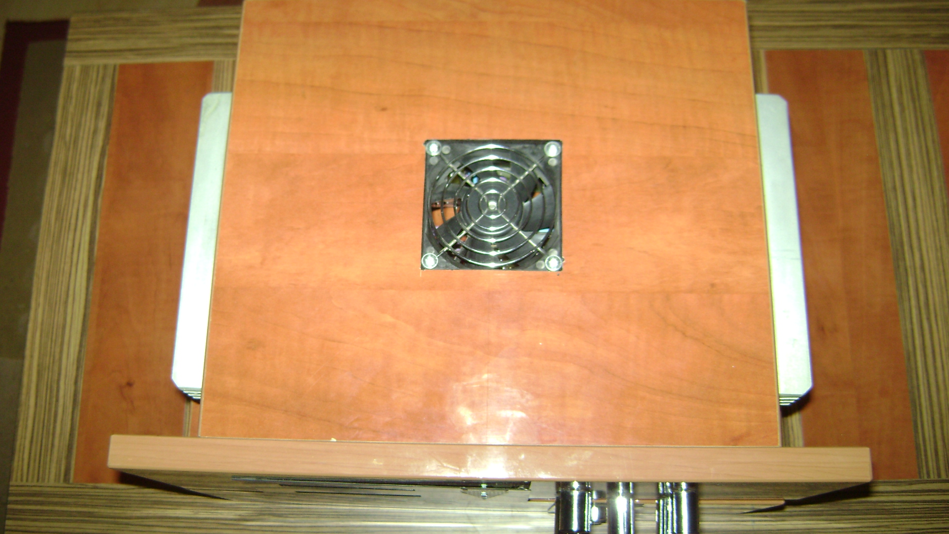 Mivel oldalt vannak a hűtőbordák először úgy terveztem, hogy kapnak egy-egy 4- 5Cm-es ventit oldalról, hőfokszabályozással mivel a kopp. áramkör tartalmazza a hőfok-venti szabályozást is. De a próbák folyamán kiderült, hogy szükségtelen. Berakhatnám a ventiket mivel megvettem de nem látom szükségét.
