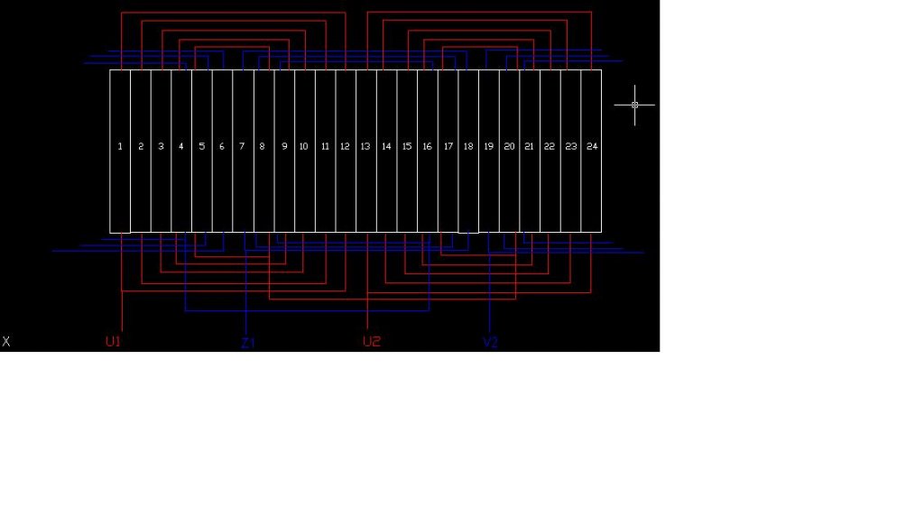 Ha megfigyeled, akkor nem is lehet üres horony, de a segédfázis tekercsből három tekercsnek kellene lennie ahhoz, hogy az indulás zökkenőmentes legyen. Kettővel is beindul, csak terhelten bizonytalanul.