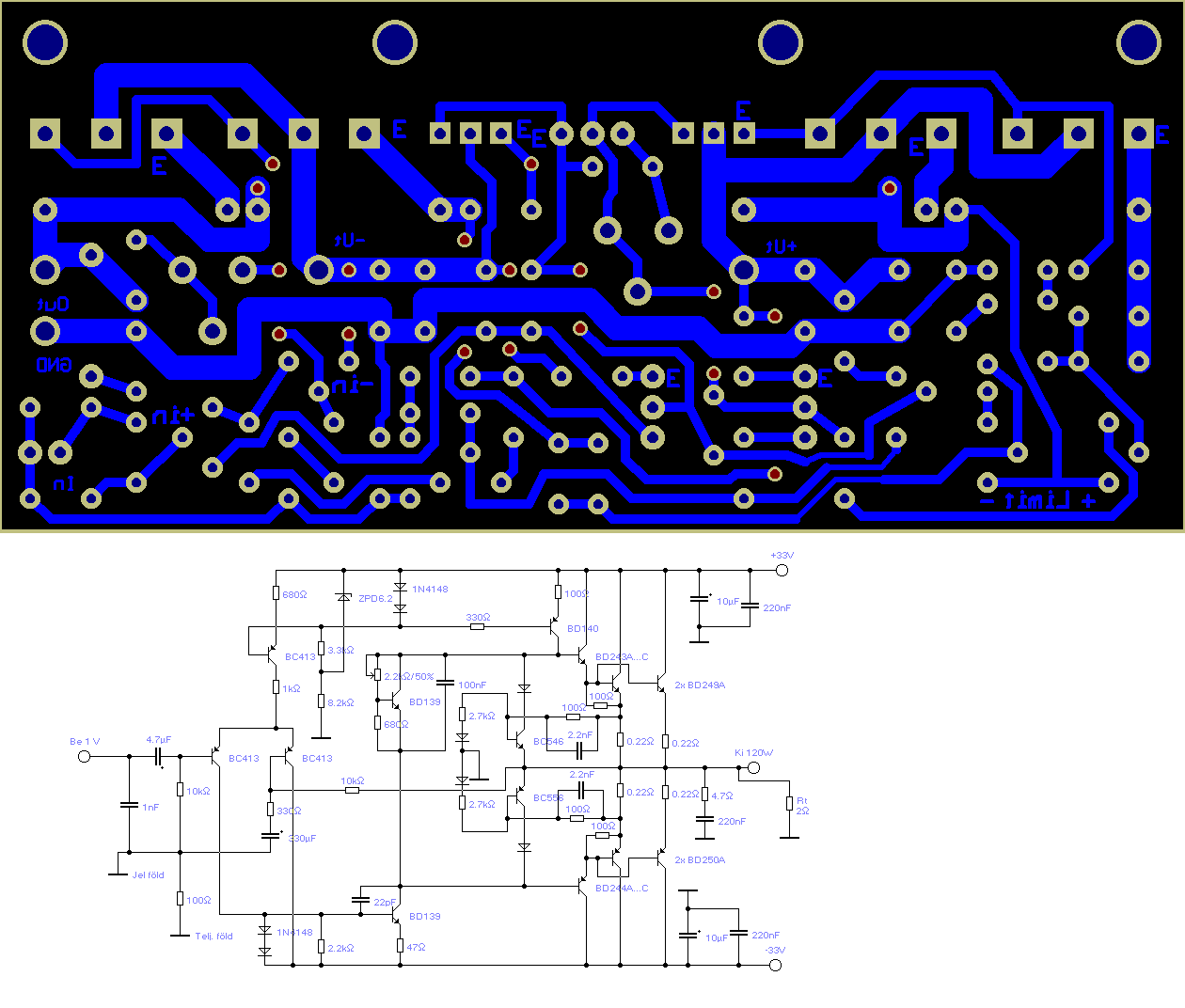 Az 2x200W-ost nem én csináltam, csak a dobozát, de egy 120Wosra átépített verzióról van kapcsolási rajzom, azt csatolom! Elvileg az alufólia alumíniumot tartalmaz, ami tudtom szerint nem mágnesezhető.. bár, lehet, hogy jobban tudod.. az anyagismeret vizsgám 2es lett, szóval inkább másba bízok