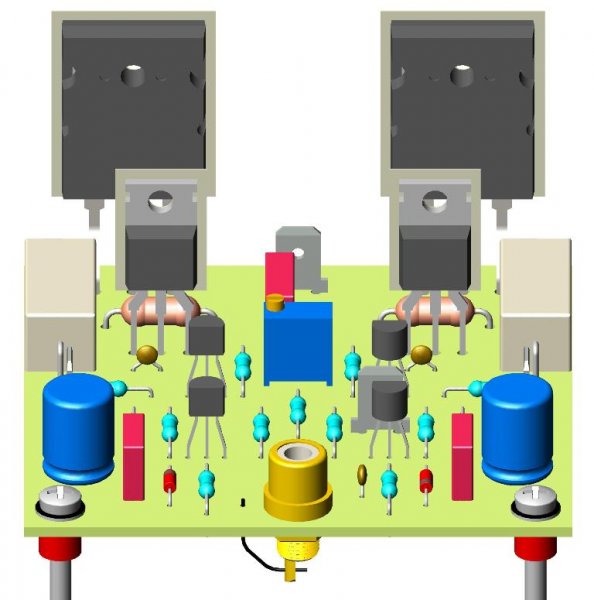 Azt nem tudom kell-e a meghajtókat hűteni, mert megnéztem néhány elkészült darabról készült fotót, és volt ahol láttam pici kis lemezkét, volt ahol nem volt semmi. Ha kell. ise is lehet tenni egy hűtőfelületet, elfér kényelmesen. A TO92-es tokos tranyók, nem a rajzi típusokhoz illenek, hanem "normális" középen lévő bázisos tokozásokhoz. De azért az eredeti is viszonylag egyszerűen beletekerhető.