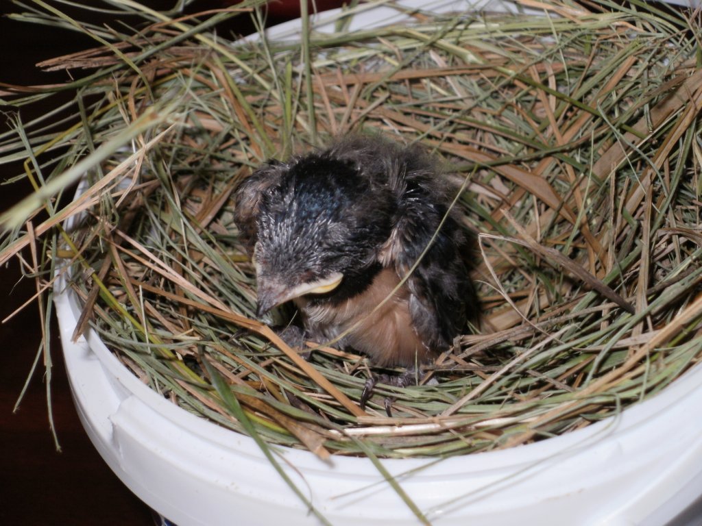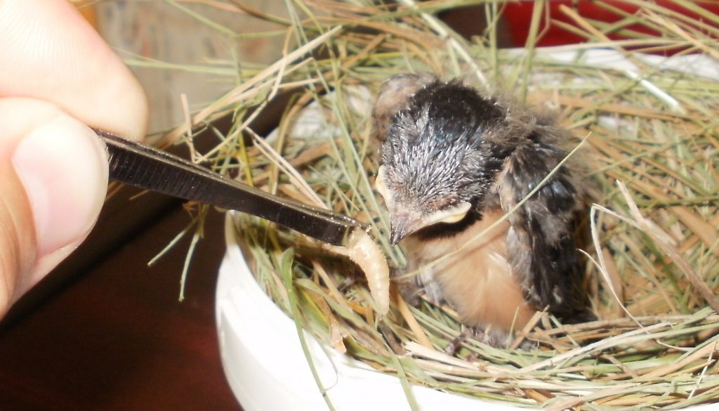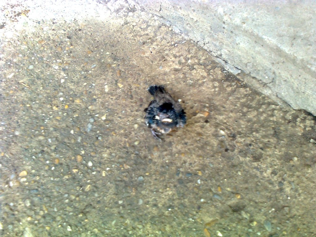 Tegnap a nagy vihar előtt a járdán találtam egy fecskefiókát. Fészket nem találtam a környéken. Ezért haza hoztam. Gondoltam itt nagyobb esélye van a túlélésre mint a macskáktól hemzsegő járdán.