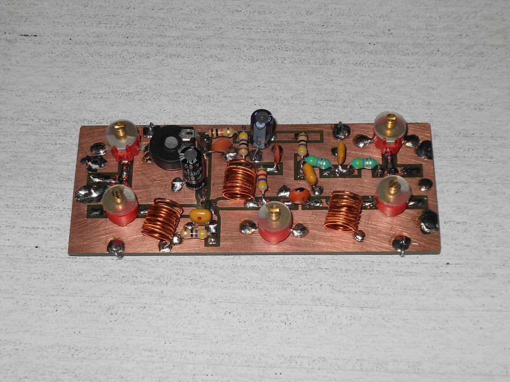 A francia rádióban benne van. De nehéz volt összeállítani a pici méret miatt, és a meglévő 3 cm átmérőjű rezgőkörökre téve egy FET-et a következő rádiónál egyből az IC re menne a BNC -n kijövő erősített jel. A coilcraftos tekercsek is nagyon jók szerelhetőség és Q szempontjából. Más rádióba is ilyet tennék így utólag.
