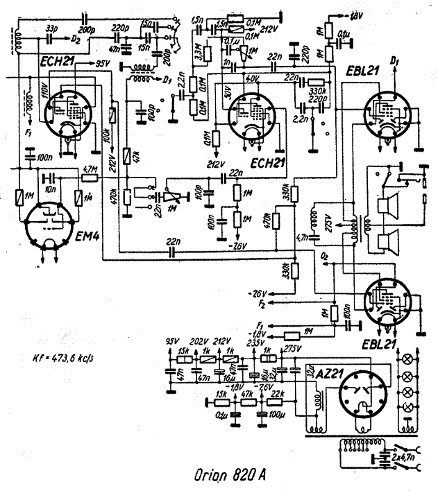 Ha jól emlékszem, ott is az ECH21 -es triódája volt a HF erősítő, az EBL előtt, a heptóda volt a KF erősítő. A heptóda nem igazán alkalmas HF erősítőbe az igen erős nemlineáris karakterisztikája miatt, ami a keverőben jól jön, de hangfrekvencián nem kívánatos, a belső intermodulációk miatt.