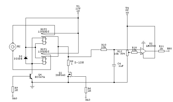 Mellékeltem egy kis rajzot, hogy én hogyan csináltam a kapum forgásirányváltását és a végállásokat áramfigyeléssel, komparátorral.