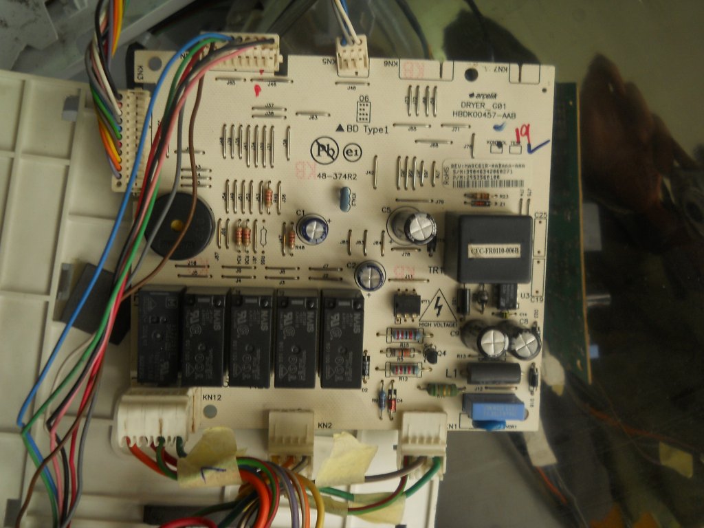 Még annyit figyeljél meg, hogy amikor lecsukod az ajtót és megnyomod a begombot, akkor világít-e a lámpa? Ha nem világít akkor ajtókapcsoló, ha világít akkor RL1 relé vagy fűtőszál hiba lehet. Azt is fogod hallani, hogy vizet ereszt-e be? Ha nincs víz nem fűthet, és akkor még lehet mágnesszelep vagy az ő triakja is rossz.