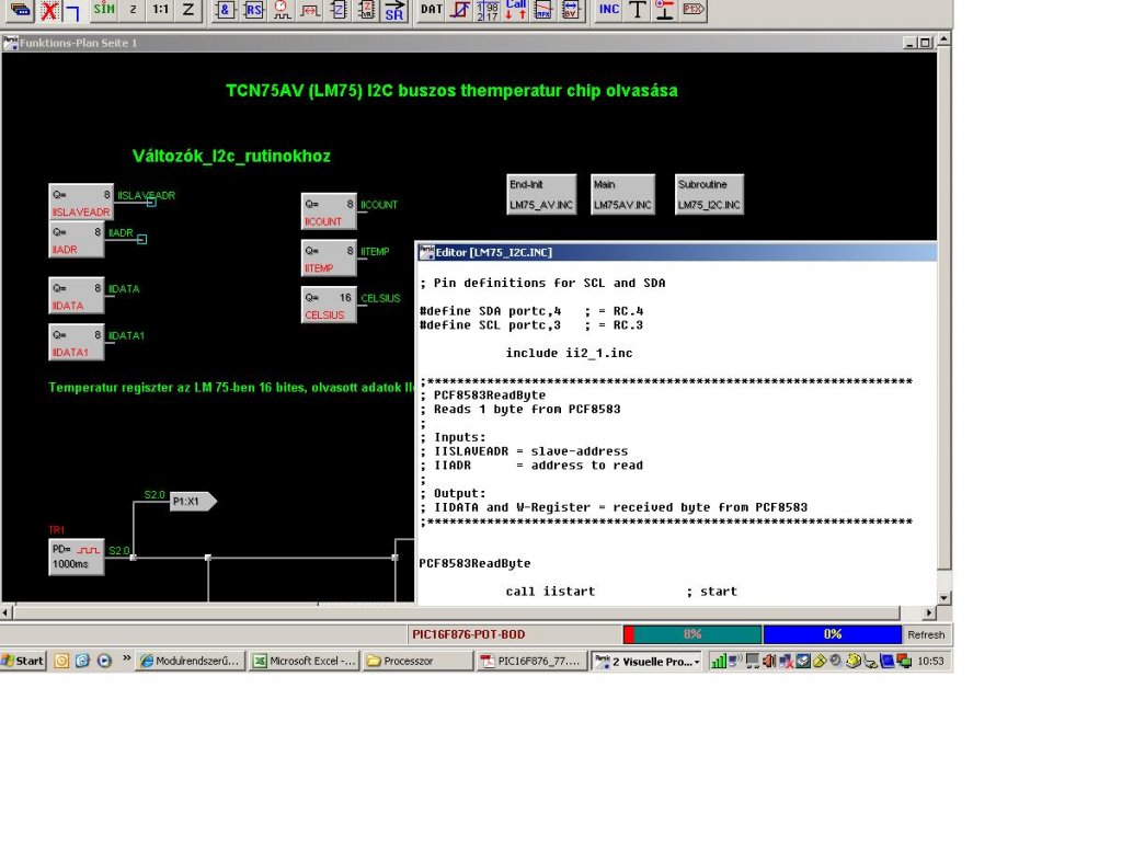 Aztán mikor a sebesség mérő programját csináltam, akkor a két pic közötti kommunikáció annyira lelassította, hogy nem lehetett valós fordulatszámot mérni, pedig 20Mhz-en mentek a pic-ek. teljes elakadás volt, azért kellett valami ami órajelből számol. A parsicban az tetszett, hogy grafikusan mindent meg lehetett oldani. Viszont elmaradt a fejlesztése. Pedig jó lett volna. De arra, hogy alap, vagy kicsit bonyolultabb programokat megírjon egy nulláról kezdő, és kedve legyen a pic-eléshez, tökéletes program.