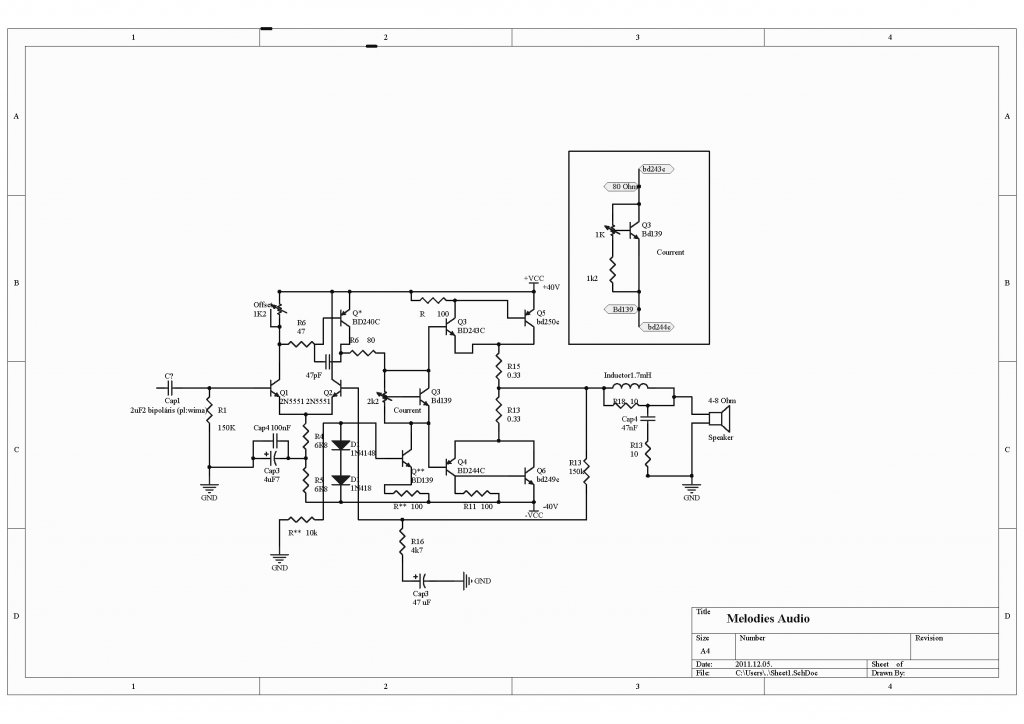 Szia! A BD250 fordítva van berajzolva. A topológia jó. A jelzett tranzisztorok többsége +/-56V-on alul van méretezve. Másik rajzot keresnék.