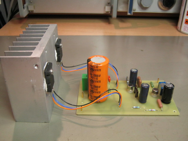 Erősen proto verzió lett,(mint a fotón is látszik, csak össze lett szórva.) 2SC3281 végtranyókkal, 30V-os táppal,0,9A árammal.