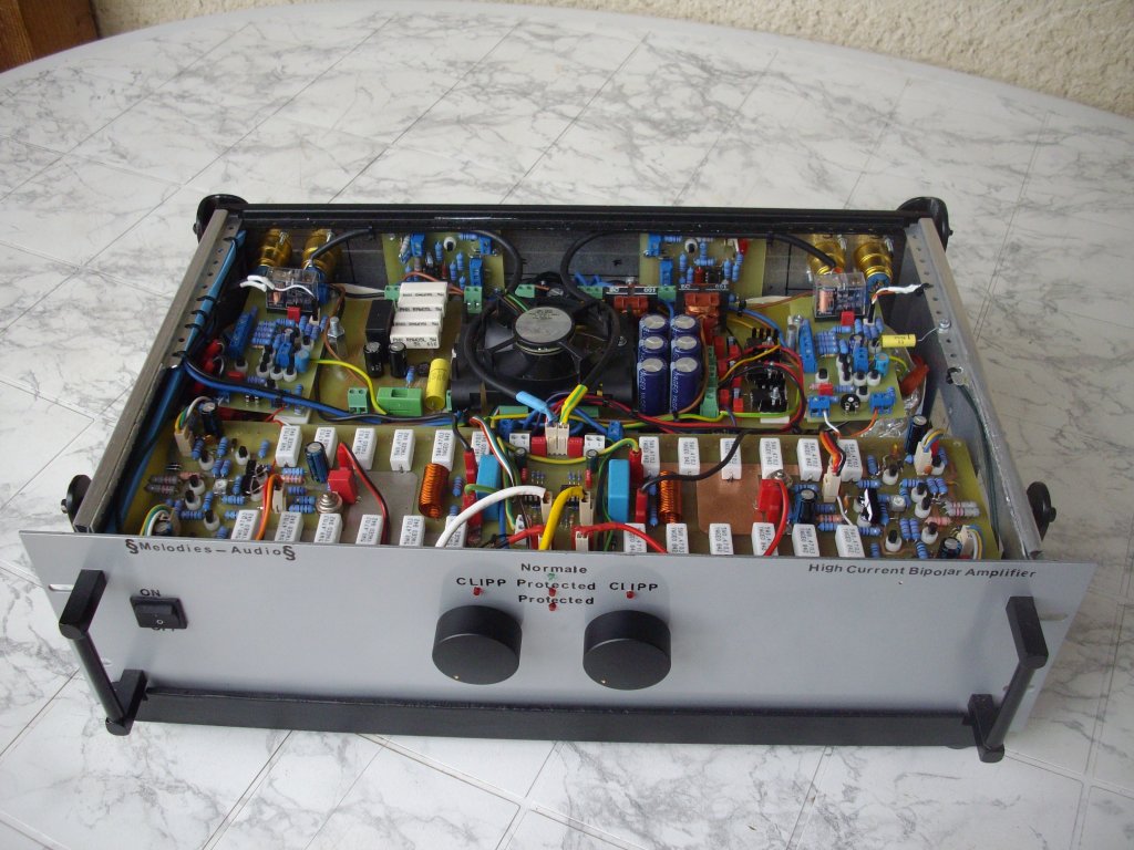 Sziasztok, nekiálltam egy REFLEX vagy SIVA erősítő felújításának, illetve javításának, az erősítő már kétszer járt nálam, első körbe csak egy végrtanyó volt halott, majd következőbe már kettő, így a BD250-es sort kicseréltem összeválogatott tranyókra, ment is szépen, de a képeken látni fogjátok, hogy mi volt a belsejében (kb 25 év disco) lényeg , hogy oldalra lett fordítva, és valami spén odatette magát a tranyó és a borda közé, tehát füst, de most nem csak végtranyó szállt el, valami komolyabb baj is van, ezért rajzot keresek hozzá. De a problémám az, hogy nem tudom beazonosítani magát a készüléket. A barátom azt mondja hogy mielőtt lefújta feketére, az erősítő szürke színű volt, és REFLEX PPA800 felirato volt az elején, de a hátán pedig SIVA electronics látható, a reflexek szerintem RX800 jelölésűek, a sivák PPA800-ak, de se a siva ppa800 se a reflex RX800 nem ilyen, ekkor ez mi? Tudnátok segíteni? Esetleg rajzzal?