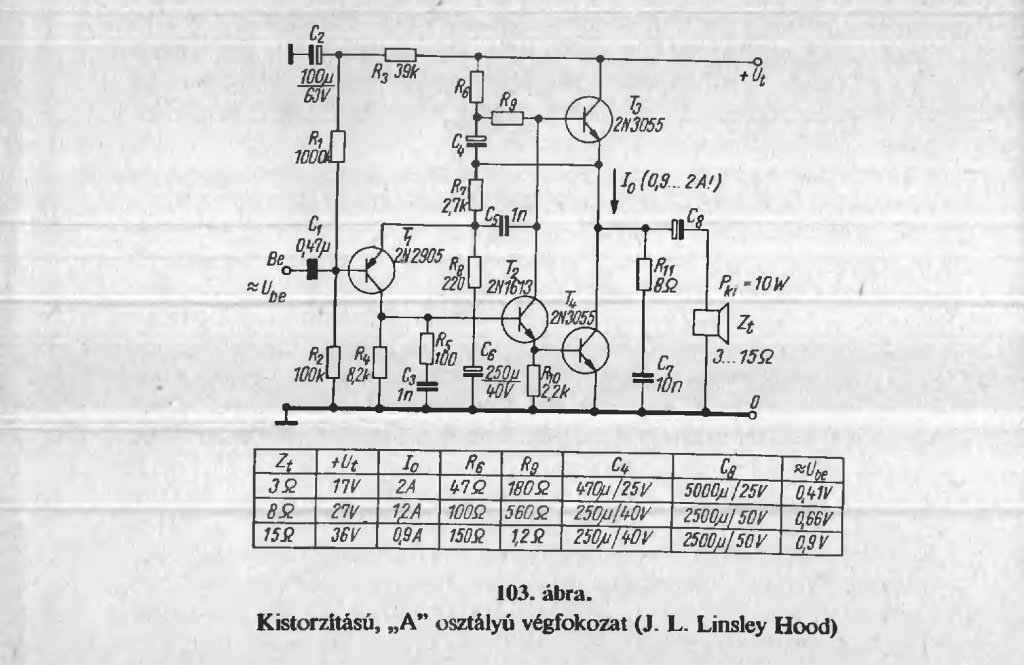 Kisérleti jelleggel megépitettem Én is, a Sipos Gyula: Hi-Fi erősitők Épitése c. könyben szereplő kapcsolást.