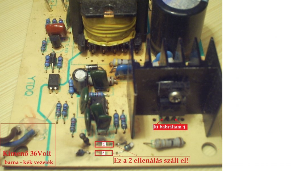 Van vagyis volt egy üzemképes tornádó T- L 100-as aku töltőm. Mivel balfék vagyok gondoltam 12Voltost csinálok belőle. Feszültség alatt voltmérővel mértem volna hol mennyi jön le. Sikerült egy rövidzárlatot csinálnom amivel elszállt 2db ellenállás és a biztosíték ami látható.Nem minősíteni kéne mekkora b.rom vagyok,én azt már tudom. Most helyre szeretném hozni lemondva az átalakításról. Aki tud segítsen. Milyen értékű az "1"- "2" számú ellenállás ami elszállt. Ez lenne az első lépésem és remélve más nem ment tönkre benne. Várom a segítségeteket! Köszi