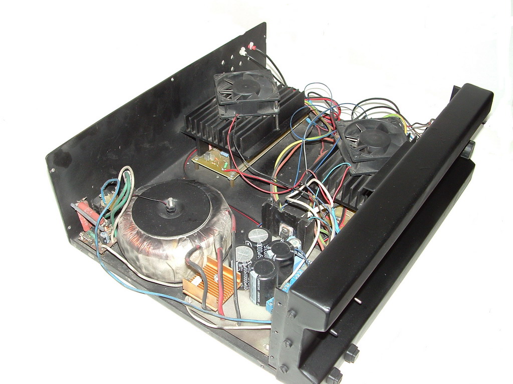 Az erősitö,szinusz 2*170W 8ohm 0.08%-os torzítással, +,-35V-s táppal.