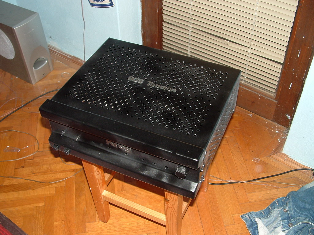 Látom több kevesebb sikerrel készülnek a tds-s ic-kel végerősítők,én a hidalt verziót építettem meg (7294v),1-2 kísérleti panel készült mire a végleges meglett,a disszipációval volt probléma,vesszettül melegedtek,de egy méretesebb borda,meg két 80*80 -as ventillátor megoldotta a dolgot.Már több bulit "levezényelt" teljes hangerőn,két éve használom,panasz nem lehet rá,teljeskörü védelemmel van ellátva (alapba az ic is).Teszek fel képet,arról is amit hajt.